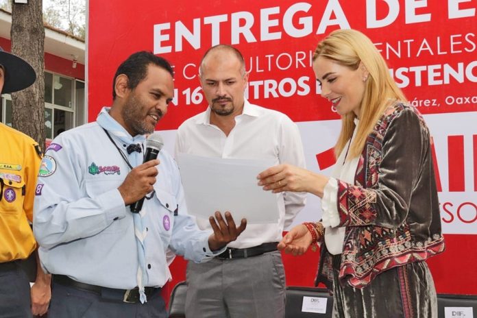 Con el objetivo de brindar servicios médicos de calidad a niñas, niños, adolescentes y personas adultas mayores, la presidenta honoraria del Sistema Estatal DIF Oaxaca, Ivette Morán de Murat, en compañía del director general Christian Holm Rodríguez y Monserrat Reyna Arias, directora de desarrollo familiar y social del Sistema DIF, entregaron de manera simbólica el equipamiento de consultorios dentales, médicos y de psicología a dos de los 13 Centros de Asistencia Infantil Comunitarios (CAIC), un Aprender a Ser y dos Centros de Atención y Desarrollo Infantil (CADI).
