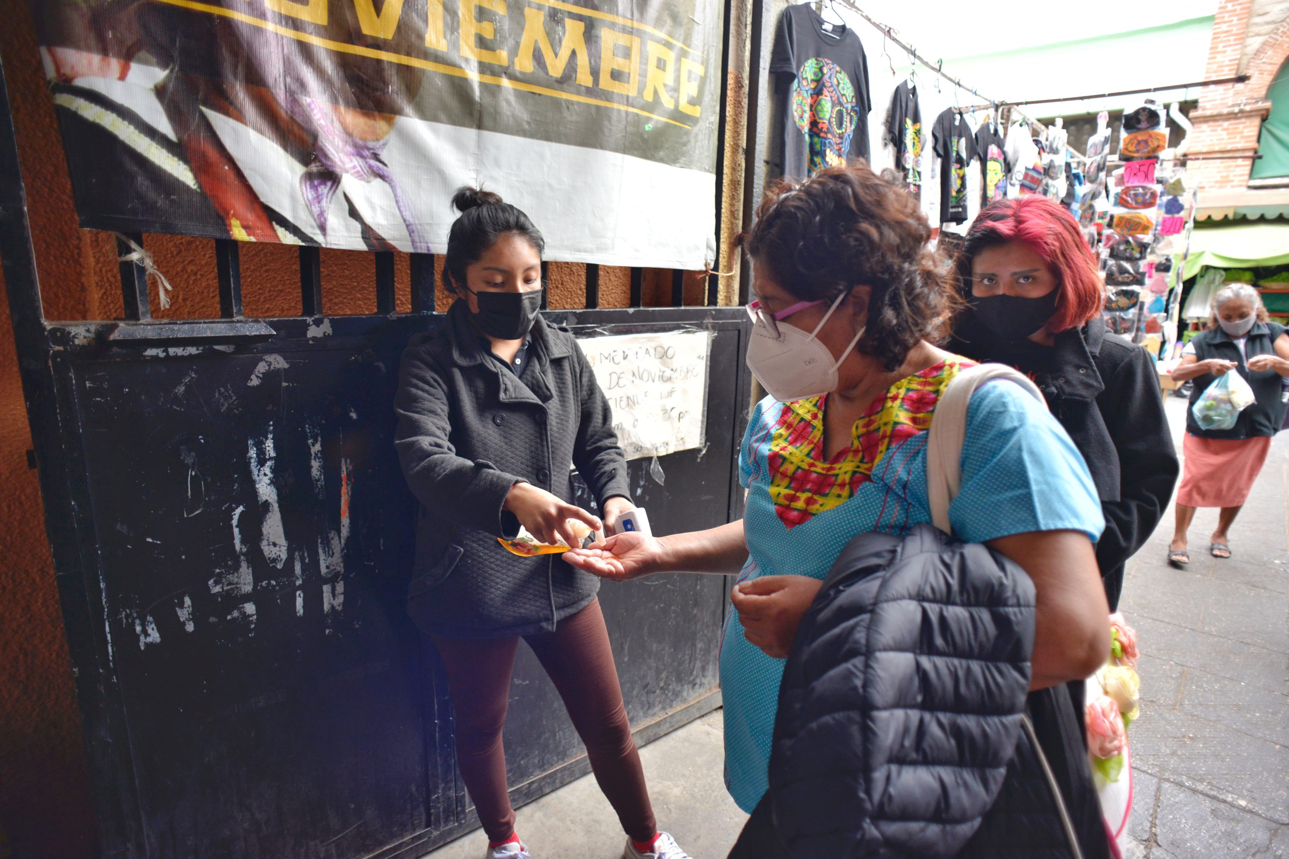 Con la instrucción de reforzar los filtros sanitarios instalados en los mercados públicos de la capital para salvaguardar la salud de comerciantes y consumidores, el Ayuntamiento de Oaxaca de Juárez, a través de la Subdirección de Mercados de la Dirección de Servicios Municipales, continúa con la entrega de insumos sanitarios en los mercados tradicionales y refuerza los filtros sanitarios de los accesos a fin de mitigar riesgos de contagio de COVID-19.