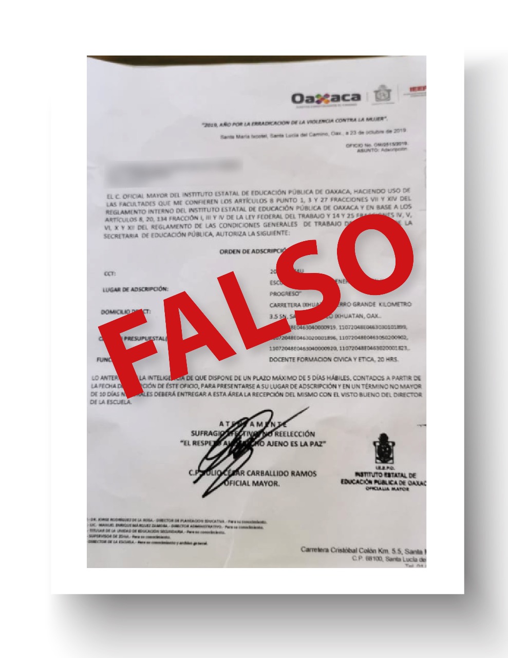 El Instituto Estatal de Educación Pública de Oaxaca (IEEPO), alerta sobre la falsificación de documentos con el membrete oficial y sellos de la dependencia, como es el caso de órdenes de adscripción o presentación para la incorporación de docentes al sistema educativo o el cambio de centros de trabajo, lo que ha resultado un fraude.