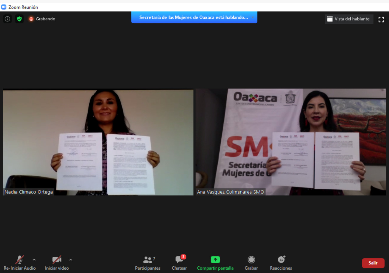 Con el objetivo de fortalecer e impulsar las habilidades, competencias y empoderamiento de las mujeres artesanas de la entidad, la Secretaría de las Mujeres de Oaxaca (SMO) firmó de manera virtual, un Convenio de colaboración con el Instituto Oaxaqueño de las Artesanías (IOA).