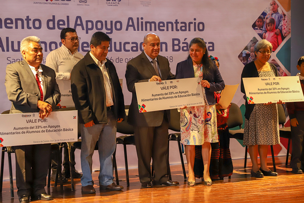 Con la representación del gobernador Alejandro Murat Hinojosa, el funcionario explicó que a partir del cuarto trimestre del 2018, un total de 26 centros educativos que corresponden a 10 Centros de Atención Infantil (CAI), seis Centros de Integración Social Indígenas, dos internados del nivel secundaria, dos internados y seis albergues del nivel primaria recibirán el incremento, el cual representa en este año de 42.7 millones de pesos para favorecer la nutrición de los hijos de madres trabajadoras o de aquellos que viven en la misma institución en la que estudian.