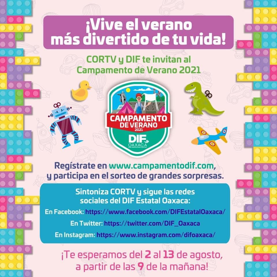 El Sistema DIF Oaxaca y la CORTV te invitan a participar en este gran programa, en el que te divertirás y aprenderás muchísimo. Vive el verano ¡más divertido de tu vida!