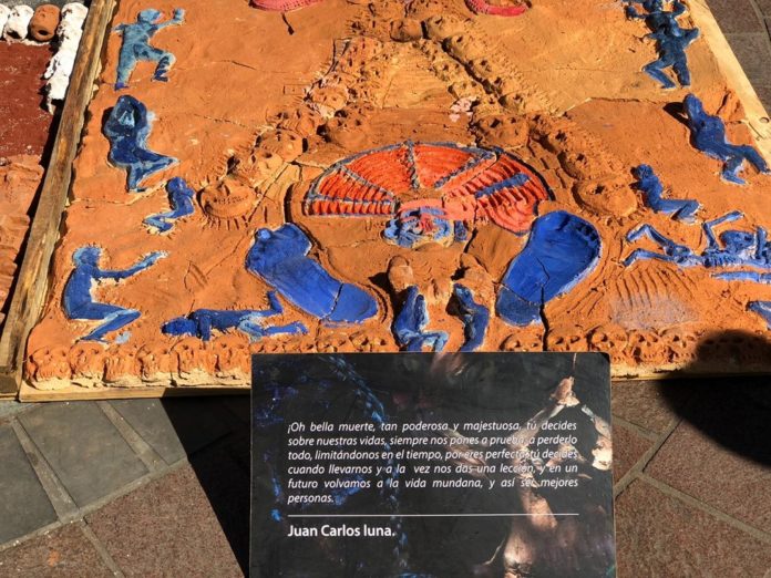 Indicó que los tapetes están conformadas por al rededor de 600 piezas de cerámica, que tienen un significado sobre la muerte.