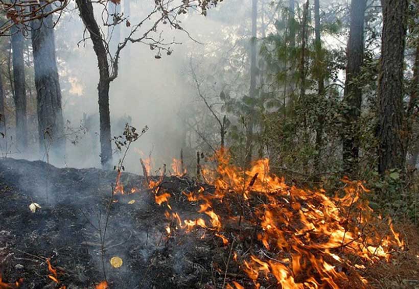 En estas tareas participan combatientes de la Comisión Nacional Forestal (Conafor), comuneros y dueños de este predio.