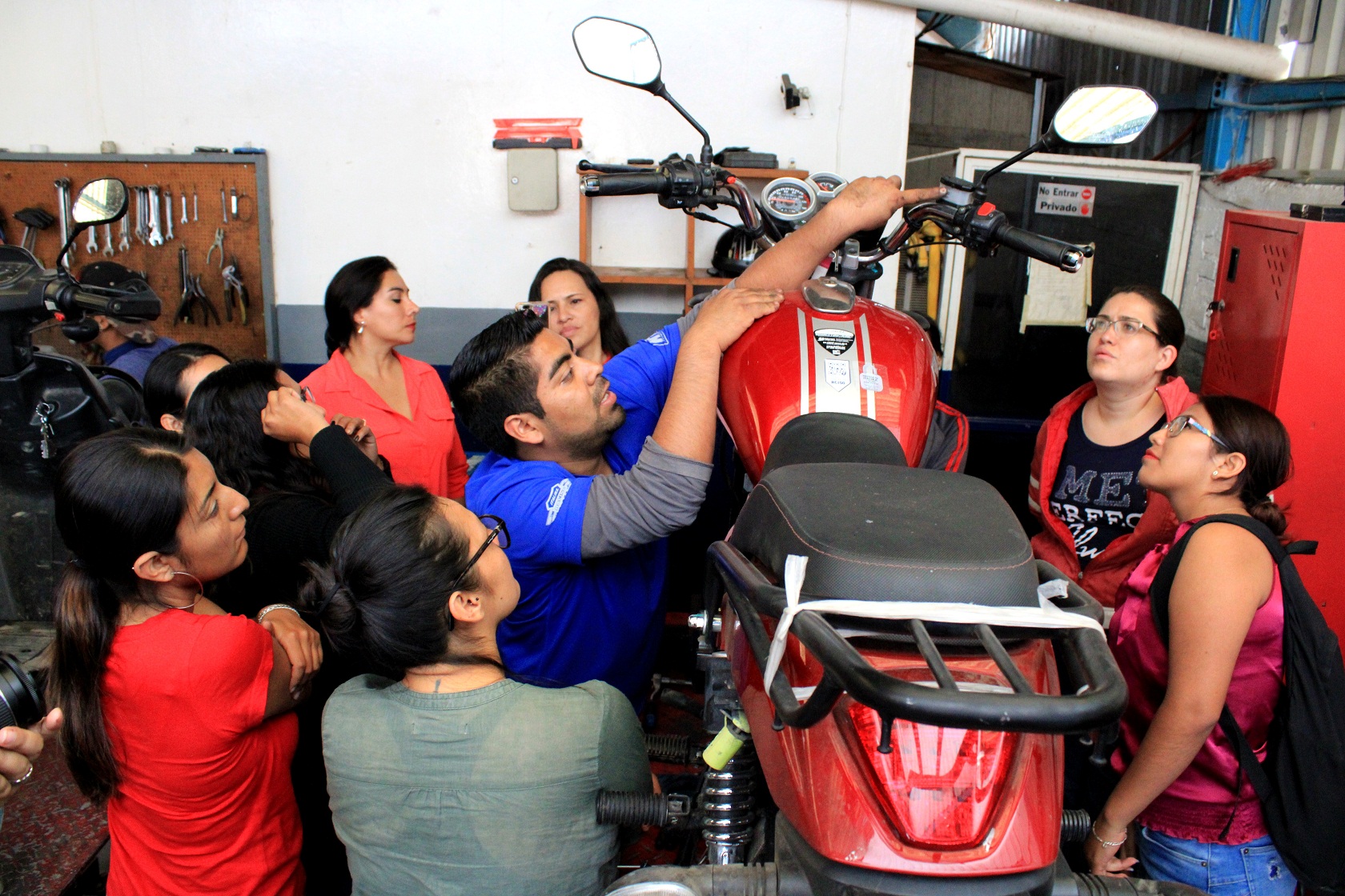 Por su parte la encargada del taller de Motoservicio Facio, Angélica Pérez Robles, detalló que las asistentes al curso, pudieron descubrir los procesos básicos de mecánica del vehículo automotriz denominado motocicleta, tales como frenos, ajuste de chicote, limpieza de balatas y focos, entre otros.