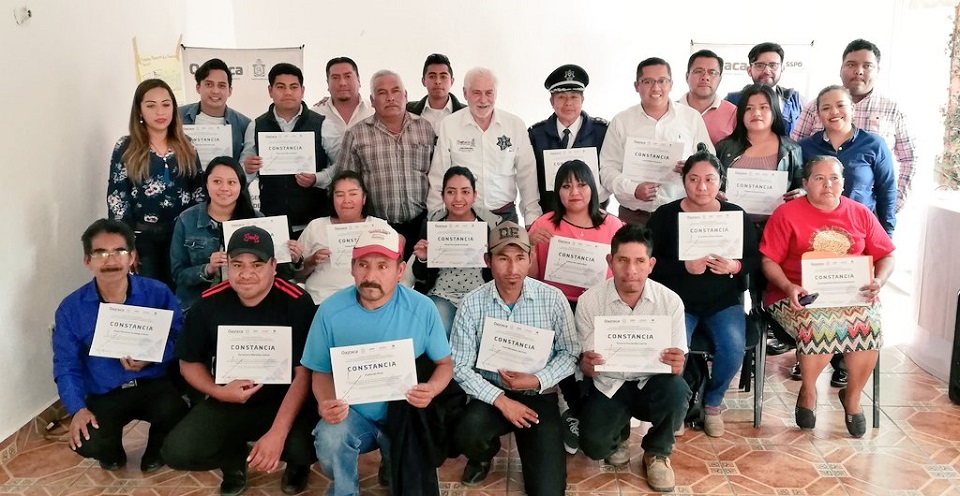 Autoridades de la Dirección General de Prevención del Delito y Participación Ciudadana clausuraron la capacitación y entregaron constancias a la población de las unidades de Tlacolula de Matamoros, Coatecas Altas, San Pablo Villa de Mitla, San Pedro Totolapa, Ejutla de Crespo, Santa Lucía del Camino, Tlalixtac de Cabrera y Santa María Huatulco.