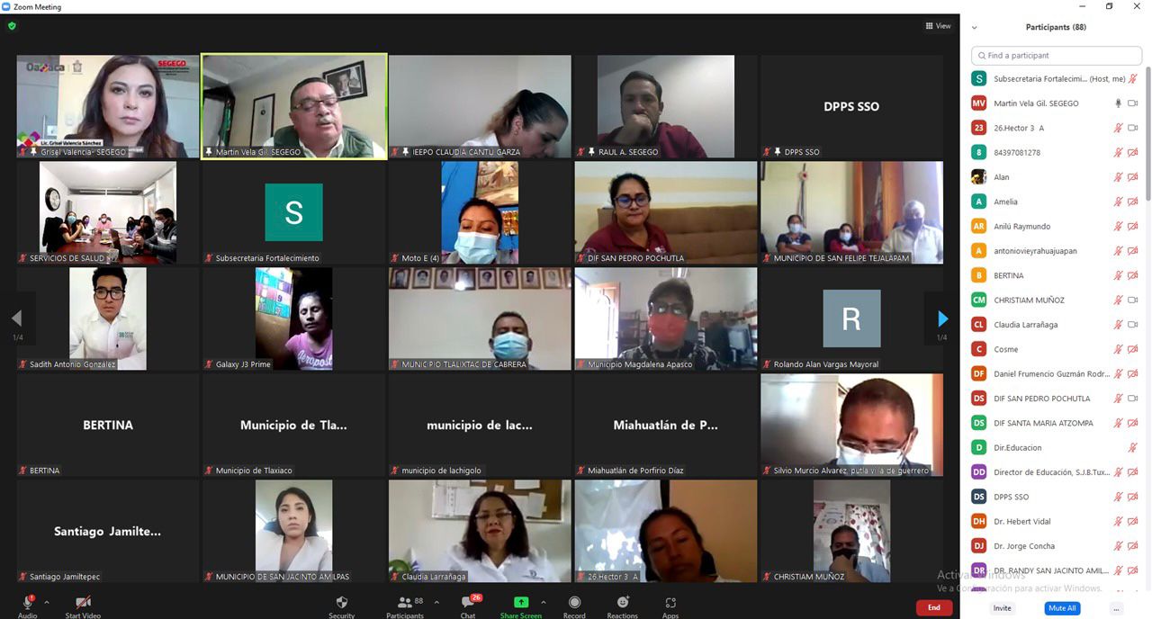 Autoridades de 50 municipios participaron en la capacitación virtual “Acciones de Prevención y Salud para un Regreso Seguro a las Aulas”, realizada por la Secretaría General de Gobierno (Segego), a través de la Subsecretaría de Fortalecimiento Municipal y la Dirección de Capacitación y Apoyo a la Gestión Municipal, en coordinación con el Instituto Estatal de Educación Pública de Oaxaca (IEEPO) y los Servicios de Salud de Oaxaca (SSO).