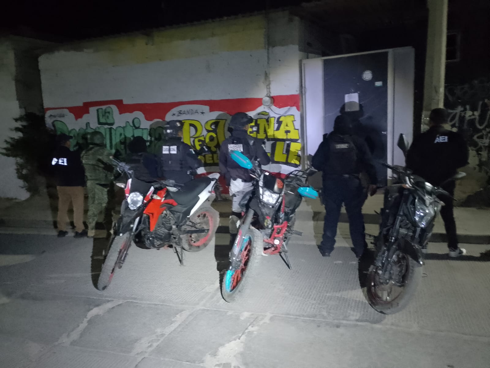 Como resultado del cateo, se aseguraron tres motocicletas que cuentan con reporte de robo vigente, las cuales fueron puestas a disposición del Ministerio Público para la integración de la carpeta de investigación correspondiente y la realización de los actos periciales necesarios.