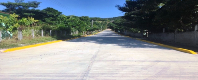 Continuando con el Istmo de Tehuantepec, en la localidad de La Oaxaqueña ubicada en Matías Romero, con inversión de 849 mil 575 pesos, se pavimentaron 950 metros cuadrados a base de concreto hidráulico de 15 centímetros de espesor, así como la construcción de 190 metros de guarnición.