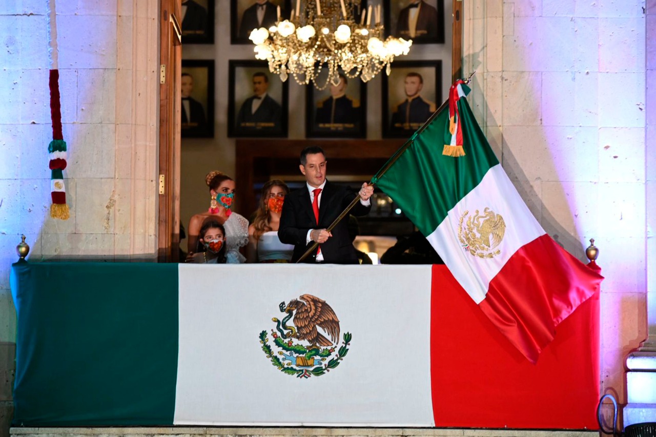 El Mandatario Oaxaqueño, acompañado de representantes de los poderes Judicial y Legislativo, integrantes del gabinete legal y ampliado del Gobierno de Oaxaca, así como de la presidenta honoraria del Sistema DIF Estatal, Ivette Morán de Murat, exclamó la arenga tradicional, al tiempo de nombrar a los próceres de la Independencia; asimismo, ondeó la Bandera Nacional y repicó la campana que simboliza el inicio del movimiento independentista.