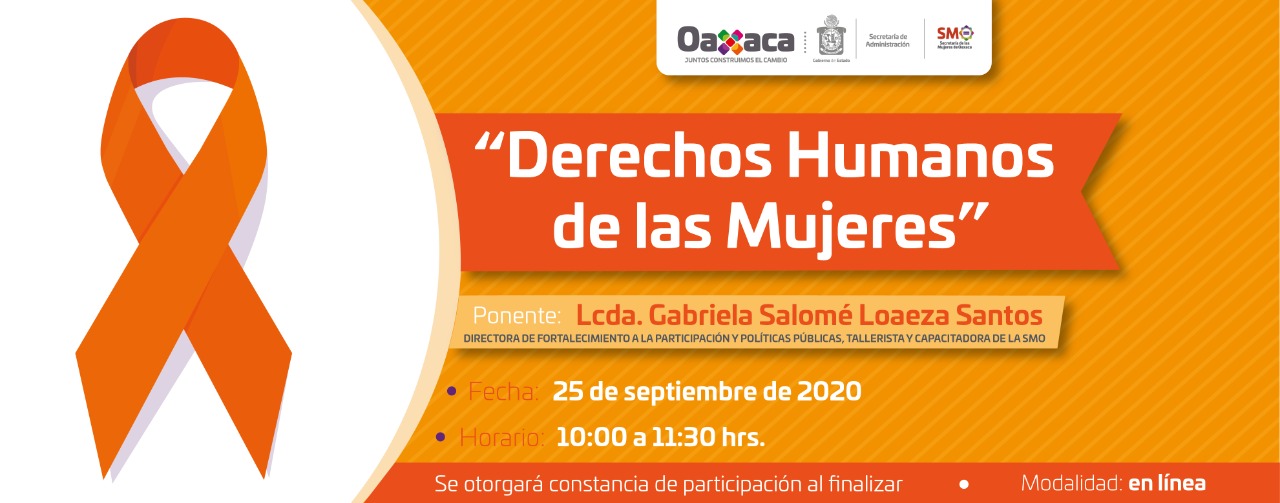 En este marco y en conmemoración del Día Naranja, el próximo 25 de septiembre, se llevará a cabo la conferencia virtual Derechos Humanos de las Mujeres, a cargo de la licenciada Gabriela Salomé Loaeza Santos, directora de Fortalecimiento a la Participación y Políticas Públicas de la SMO.