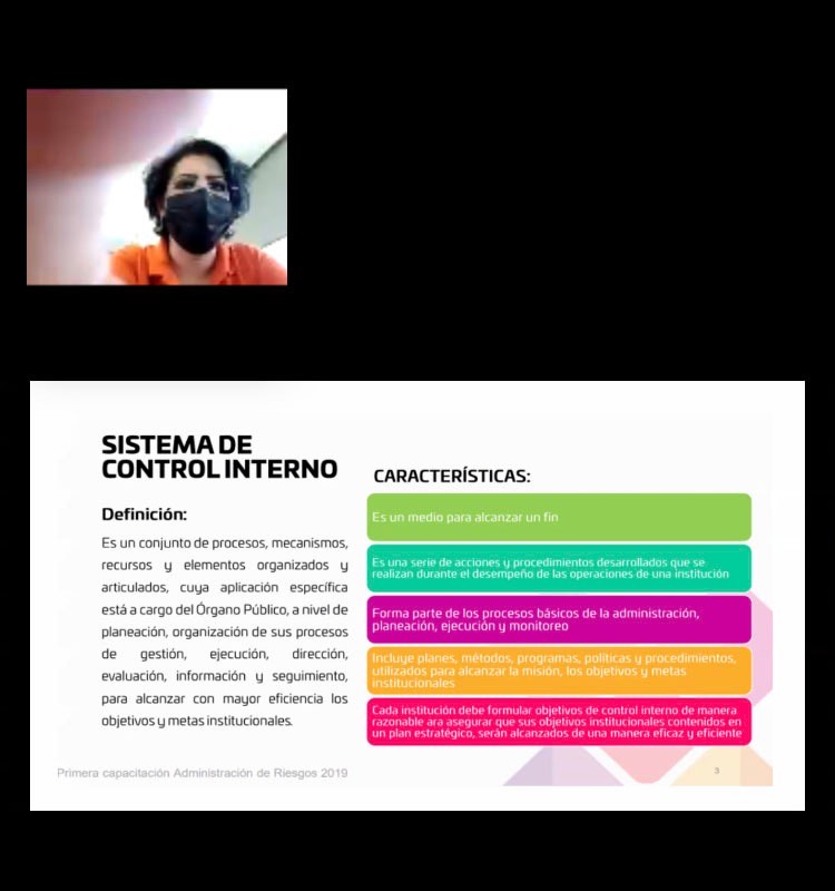 En este contexto, a través de una plataforma digital, las y los participantes aprendieron sobre la metodología establecida para la identificación, descripción, evaluación, atención y seguimiento que incluya factores de riesgo, estrategias para administrarlos y la implementación de acciones de Control.