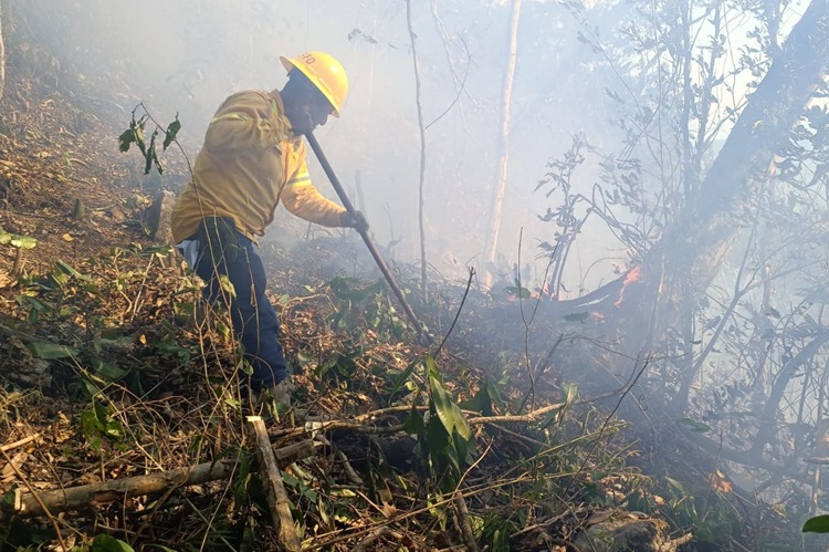 Para contener el fuego en la zona se realizó apertura y rehabilitación de brechas cortafuego, así como uso de contrafuego en zonas donde las condiciones climáticas lo permitieron en coordinación con personas pobladoras y voluntarias.