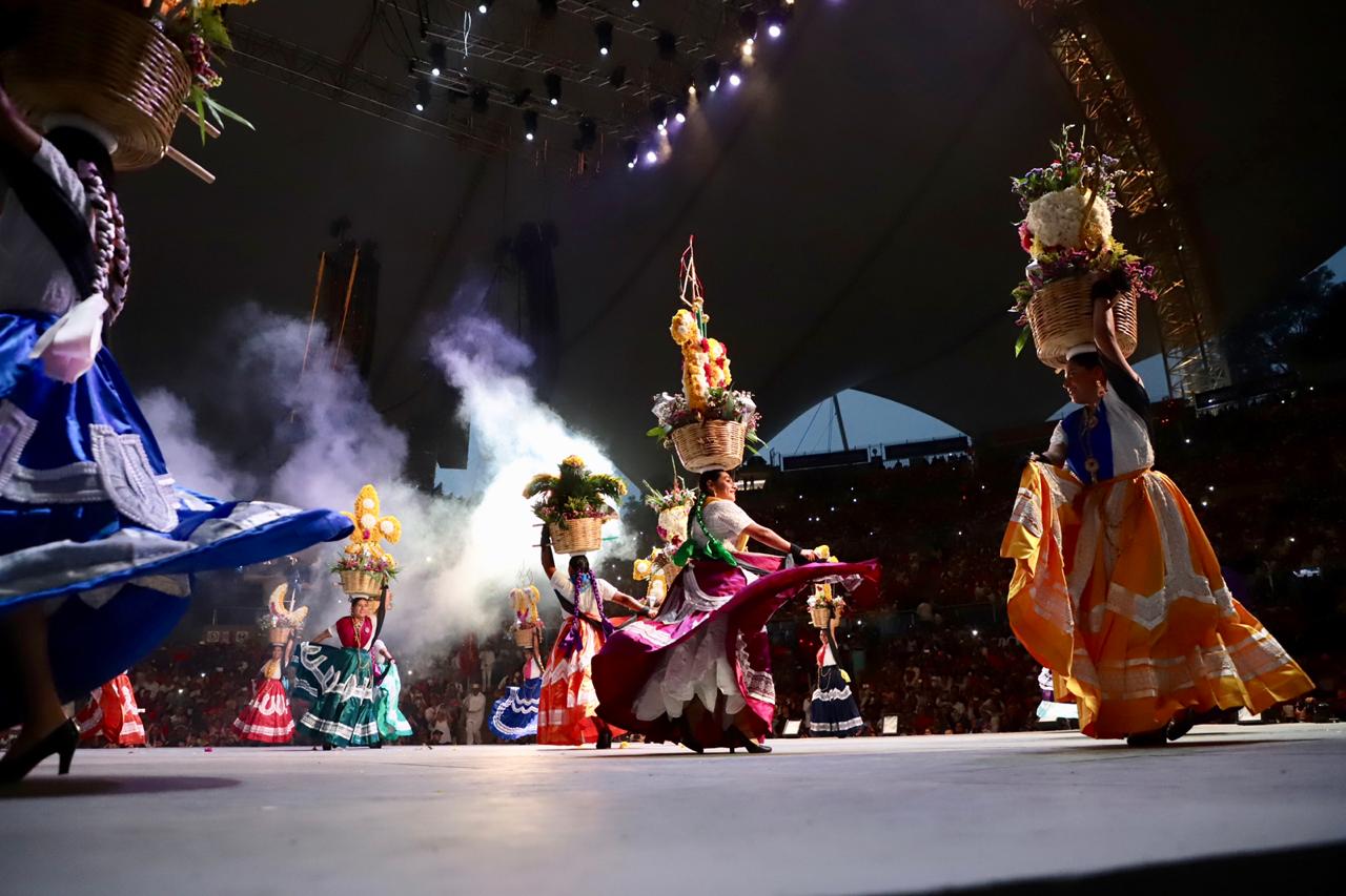 Los momentos más ovacionados de esta emisión vespertina se hicieron presentes con las mujeres de San Juan Bautista Tuxtepec y su característico baile de “Flor de Piña”; así como con los danzantes de la pluma de San Bartolo Coyotepec, que cautivaron al público con su danza de conquista.