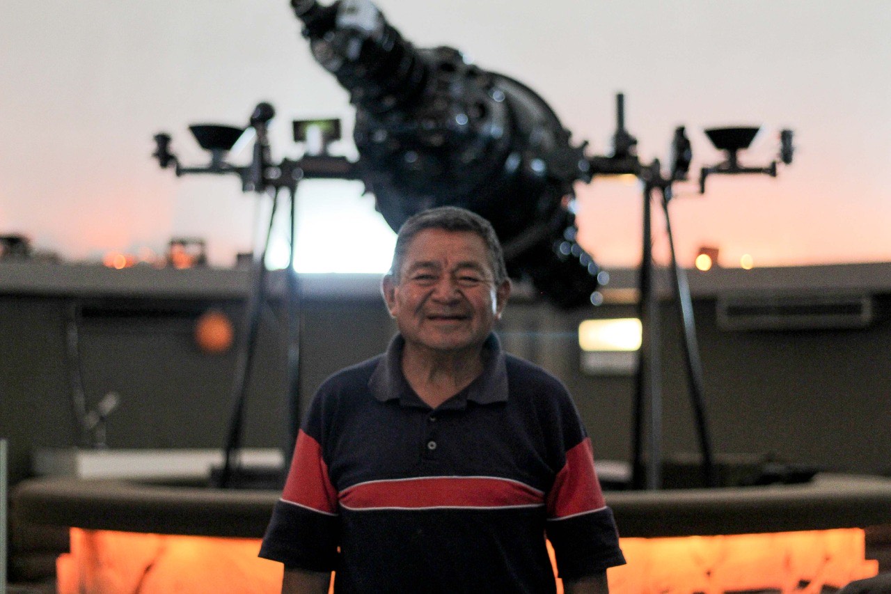 Sus manos experimentadas y excelente memoria presentan hermosas constelaciones, galaxias, la superficie lunar y al astro rey: el Sol. Hace 35 años que don Darío comenzó a manejar y dar mantenimiento correctivo y preventivo a los proyectores de este espacio.