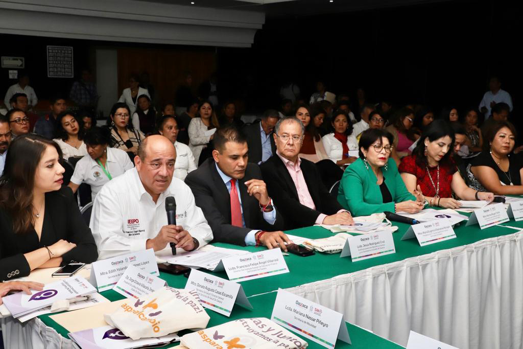 En el marco de la Cuarta Sesión Ordinaria del Sistema Estatal para la Igualdad entre Mujeres y Hombres para el Estado de Oaxaca -que tiene como objetivo promover acciones que combatan las prácticas de discriminación y violencia-, la cual fue presidida por la secretaria de las Mujeres de Oaxaca, Ana Vásquez Colmenares Guzmán, el director general del IEEPO, Francisco Ángel Villarreal refrendó el compromiso del Instituto en este tema y la importancia de fomentar el uso de un lenguaje incluyente para ambos sexos.
