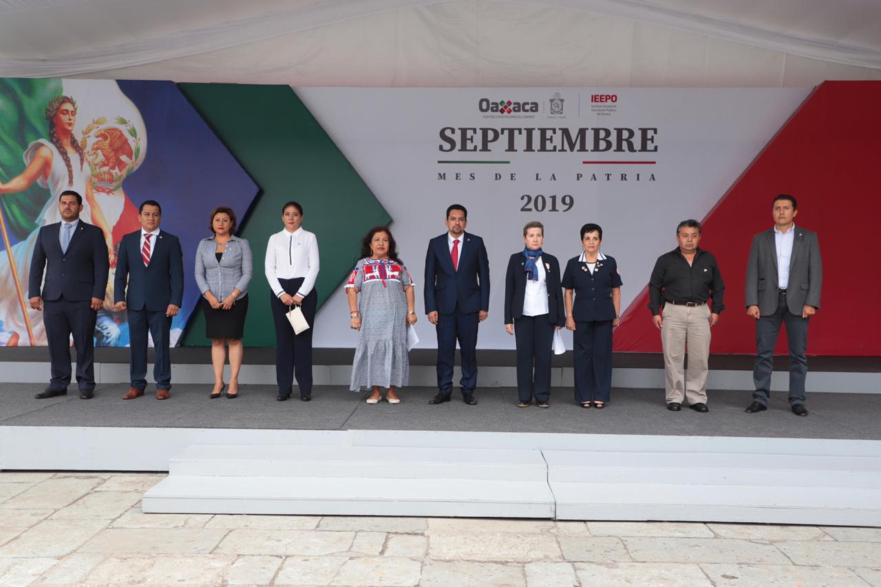 “Convoco a las y los oaxaqueños a que hagamos de la unión nuestra fuerza, los llamo a que aportemos nuestro compromiso y voluntades para seguir luchando por una patria más justa”, expresó el coordinador de Atención Ciudadana y Vinculación Social de la Jefatura de la Gubernatura, Mario Omar Acevedo Ramírez, al encabezar la ceremonia de arriamiento de la Bandera Nacional, como parte del programa cívico “Septiembre, Mes de la Patria”.