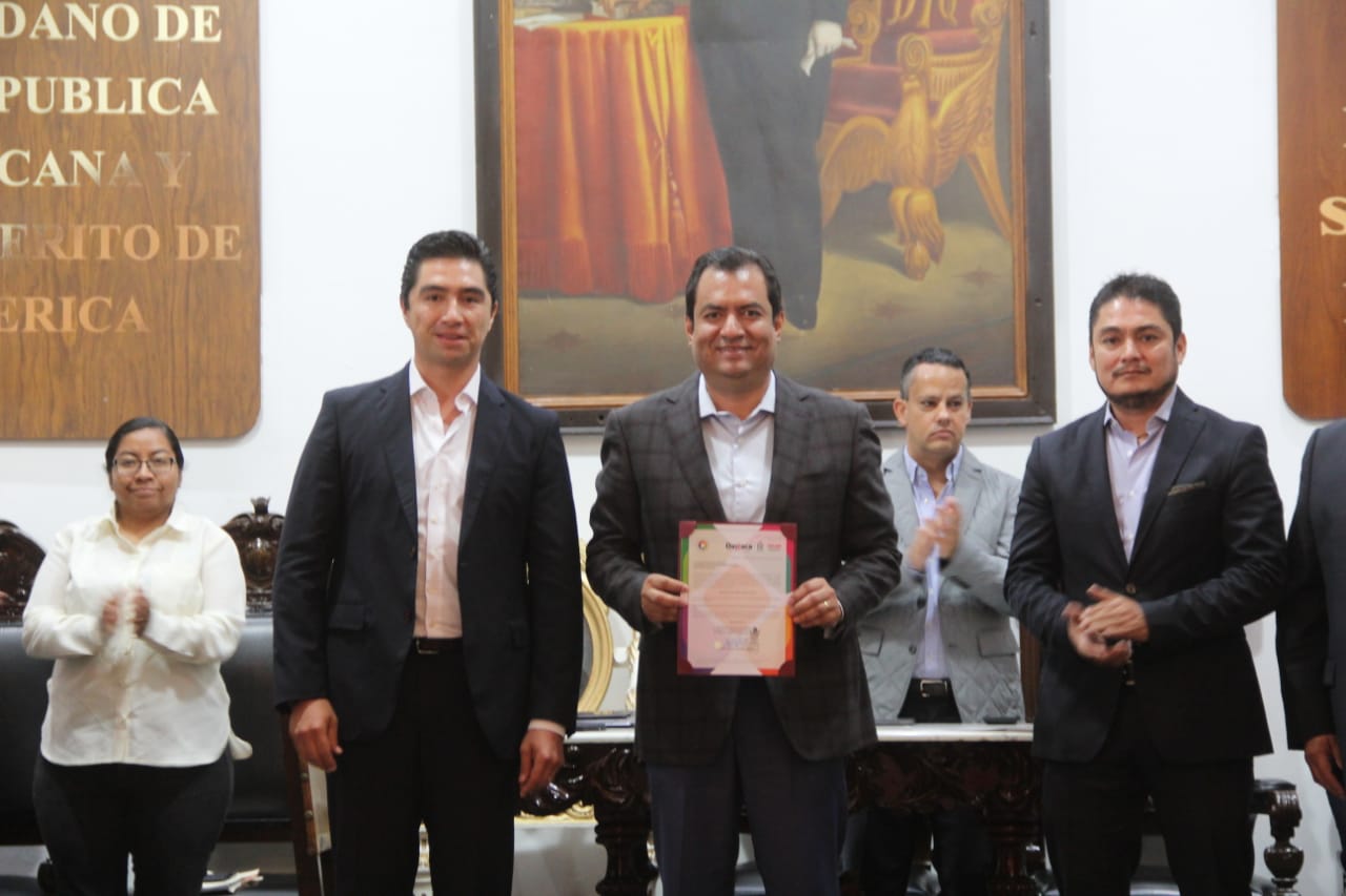 En el Salón de Cabildo ‘Porfirio Díaz Mori’ en la sede del H. Ayuntamiento de Oaxaca de Juárez, el titular del Comité Estatal de Planeación para el Desarrollo de Oaxaca (Coplade), Javier Lazcano Vargas realizó la entrega simbólica del oficio de validación del Plan Municipal de Desarrollo 2019-2021 de este municipio al presidente Oswaldo García Jarquín.