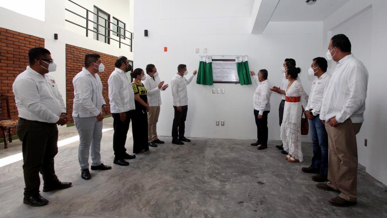 “Así como hubo dolor, vendrán tiempos mejores y vendrán los mejores tiempos para el Istmo de Oaxaca”, expresó el gobernador Alejandro Murat Hinojosa, al inaugurar la construcción del Palacio Municipal de esta localidad istmeña, un edificio emblemático que posee una antigüedad de más de 100 años, y que sufrió daños estructurales severos con pérdida total durante los sismos de septiembre de 2017 y febrero de 2018.