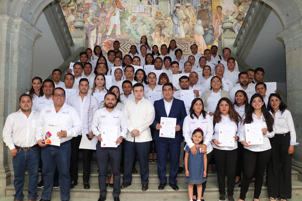 Los certificados fueron entregados a 120 trabajadores y trabajadoras del sector público y privado de Oaxaca, entre servidores públicos del Registro Civil de Oaxaca, del Monte de Piedad, Universidad Autónoma Benito Juárez de Oaxaca (UABJO) y empleados de Solarvatio S.A y Don David Gold México S.A de C.V.