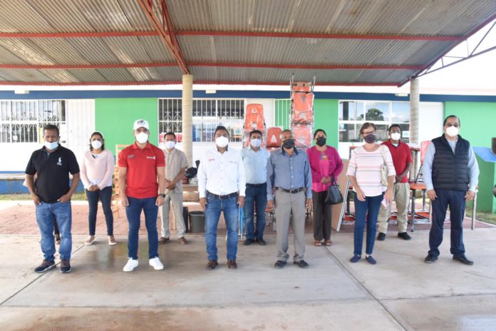 En representación del IEEPO, el jefe de la Unidad de Educación Especial, Joaquín Bernal Fernández, acompañado de los delegados de Servicios Educativos en el Sector Poniente, de la región Valles Centrales, Julio César Alonso Chávez, y regional de Valles Centrales del Sistema DIF Oaxaca, Joel Iván Martínez Reyes, llevaron los apoyos consistentes en mesas, sillas, pizarrones, así como material de aseo y desinfección, deportivo y de oficina.