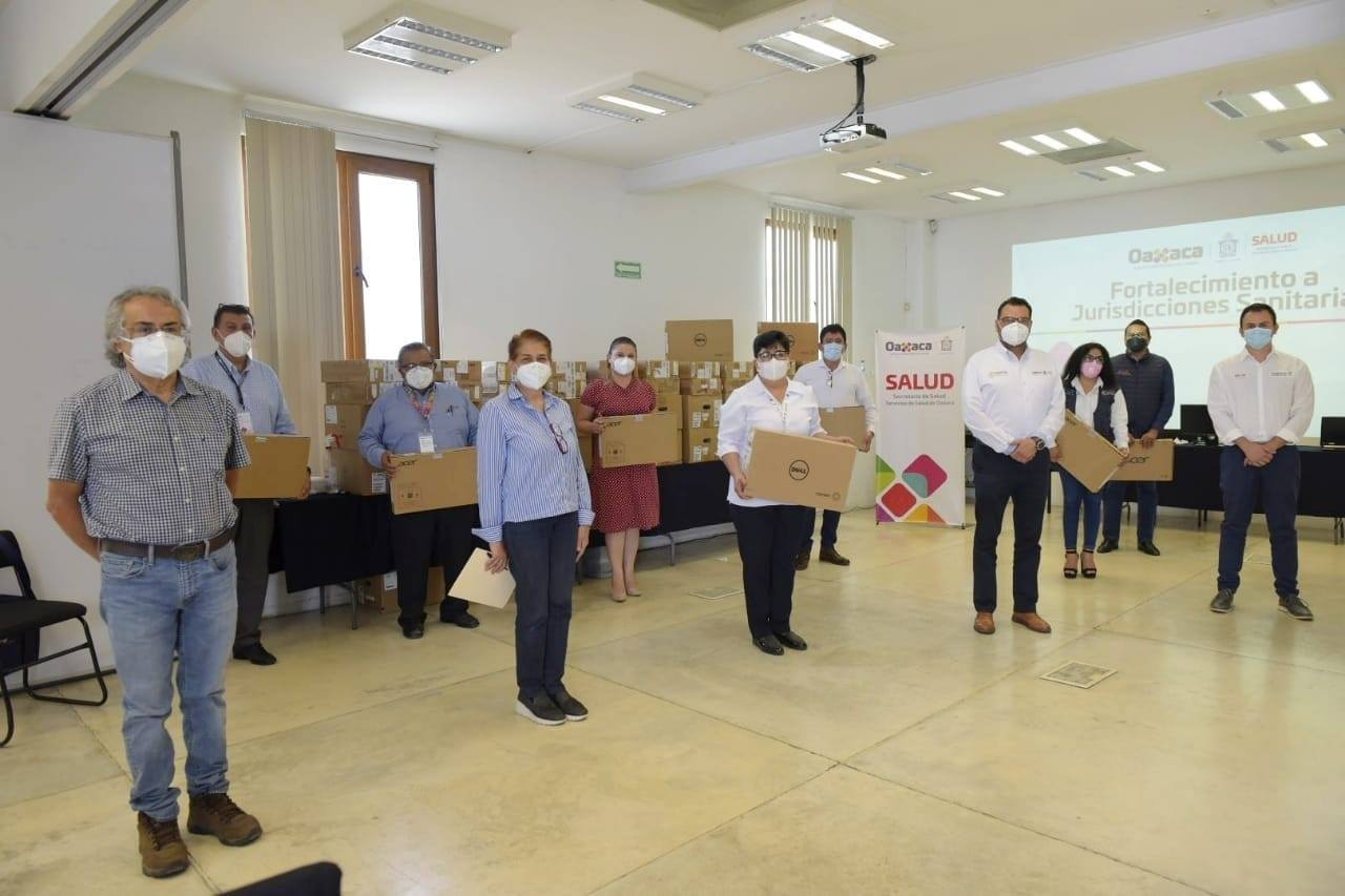 Como parte del programa de fortalecimiento de los Servicios de Salud de Oaxaca (SSO), el secretario de Salud, Donato Casas Escamilla, llevó a cabo la entrega de 38 equipos de cómputo a las seis jurisdicciones sanitarias y a la Unidad de Inteligencia para Emergencias en Salud (UIES), los cuales ayudarán a reforzar el trabajo coordinado para hacer frente a la pandemia por COVID-19.