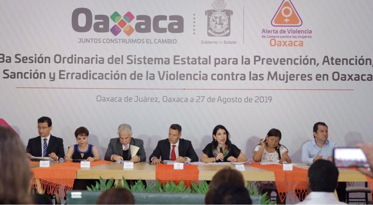 En el marco de la Tercera Sesión Ordinaria del Sistema Estatal para la Prevención, Atención, Sanción y Erradicación de la Violencia contra las Mujeres (PASEMV), presidida por el gobernador Alejandro Murat Hinojosa, se entregó el informe de acciones en respuesta a la Alerta de Violencia de Género contra las Mujeres (AVGM) para su revisión y posterior envío a la Comisión Nacional para Prevenir y Erradicar la Violencia Contra las Mujeres (Conavim), de la Secretaría de Gobernación.