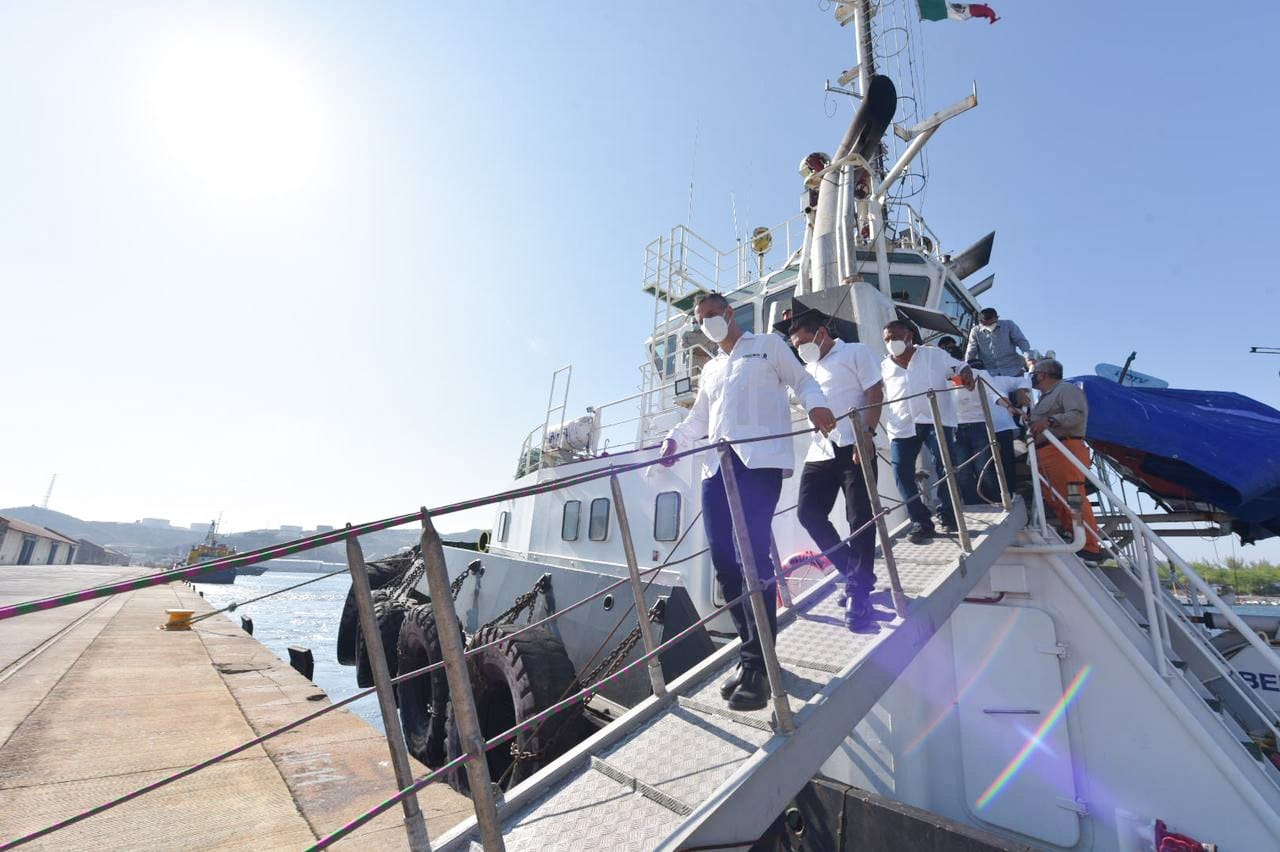 La gira de trabajo del gobernador Alejandro Murat por este municipio concluyó con un recorrido de supervisión por barco, para conocer los avances de la escollera rompeolas en el Puerto de Salina Cruz, que forma parte de la Plataforma Logística del Corredor Interoceánico, una de las obras de ingeniería marítima más compleja, la cual estará conformada en un 90% por piedra.
