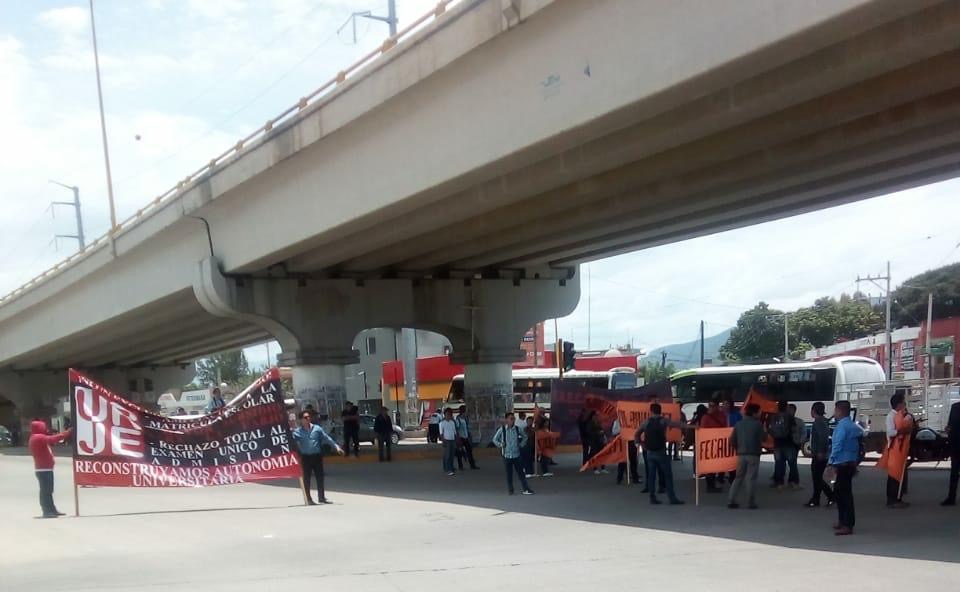 El aumento en la tarifa del transporte público, ocasionó que este lunes integrantes del Frente de Estudiantes Catedráticos y Administrativos de la Universidad Autónoma Benito Juárez de Oaxaca (FECAUABJO), bloquearan el crucero en Cinco Señores.