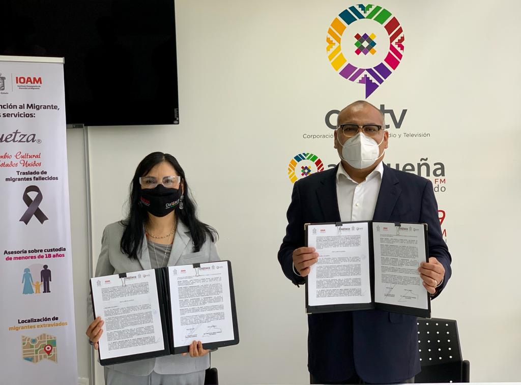El Gobierno del Estado a través del Instituto Oaxaqueño de Atención al Migrante (IOAM) y la Corporación Oaxaqueña de Radio y Televisión, (CORTV), realizaron la firma de un convenio de colaboración a fin de generar proyectos que permitan difundir los tramites y servicios que el IOAM tiene disponible a beneficio de la comunidad migrante y de las familias oaxaqueñas.