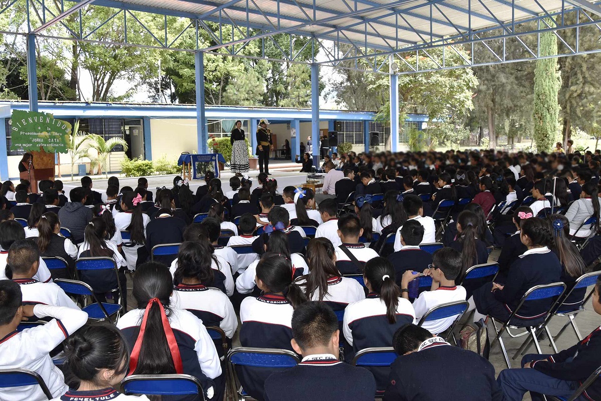 Como parte de las acciones para fomentar la inclusión y equidad de género, mediante una dramatización, en la cual la autora del libro “Juana C. Romero, una mujer extraordinaria” se caracteriza de esta oaxaqueña nacida el 27 de noviembre de 1837 en Santo Domingo Tehuantepec, se expone a las y los estudiantes de educación secundaria parte de su legado y contribución a la entidad y al país.
