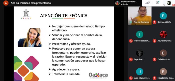 Asimismo, se abordó la atención remota que ha tomado relevancia en estos tiempos de pandemia. Por ello, se otorgaron recomendaciones al momento de dar servicios de manera telefónica o vía Internet, misma que debe contar con características como la claridad y el total enfoque a las y los usuarios.