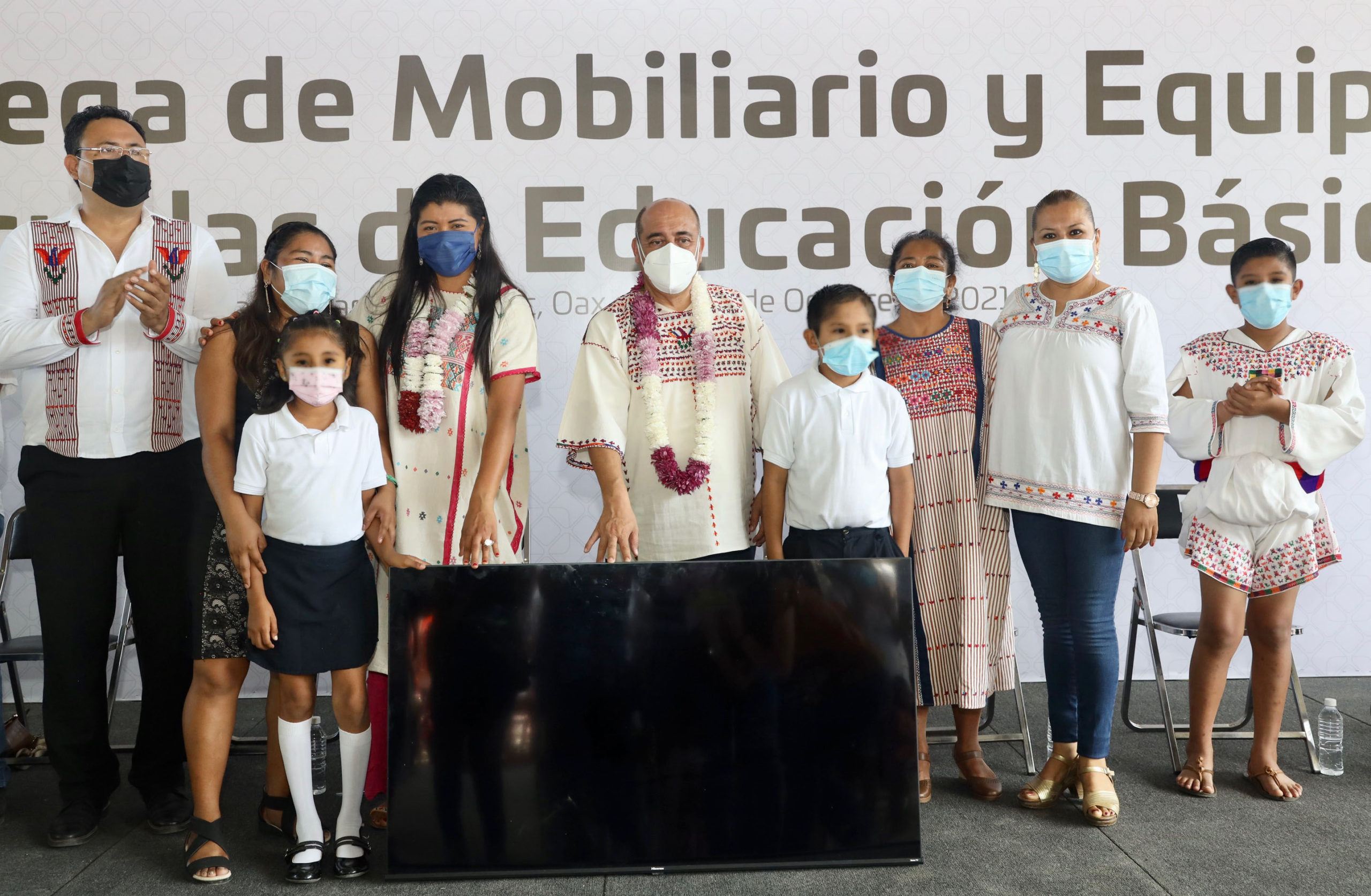 Así también, se realizó la entrega de mobiliario y equipo, en esta ocasión a 31 escuelas de nivel básico de esta comunidad indígena y de los municipios de San Juan Cacahuatepec, Santa María Ipalapa, San Pedro Amuzgos, Santa Cruz Itundujia y Mesones Hidalgo, en beneficio de dos mil 597 estudiantes y 201 maestras y maestros, con una inversión de 1.8 millones de pesos.