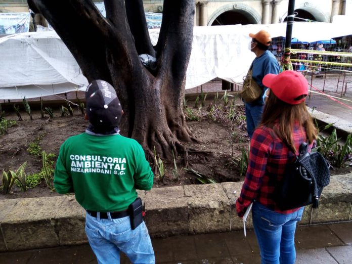 El Gobierno del Estado informa que en relación al desplome registrado este martes 15 de septiembre de un árbol de la especie Ficus retusa (laurel), ubicado en el Zócalo de la Ciudad de Oaxaca de Juárez, frente al restaurante El Jardín Primavera, sin registrarse lesionados ni daños materiales, personal técnico de ambas dependencias realizaron una visita técnica para analizar las causas de la caída del árbol así como evaluar el riesgo de otros ejemplares, ubicados en el corazón de esta ciudad.