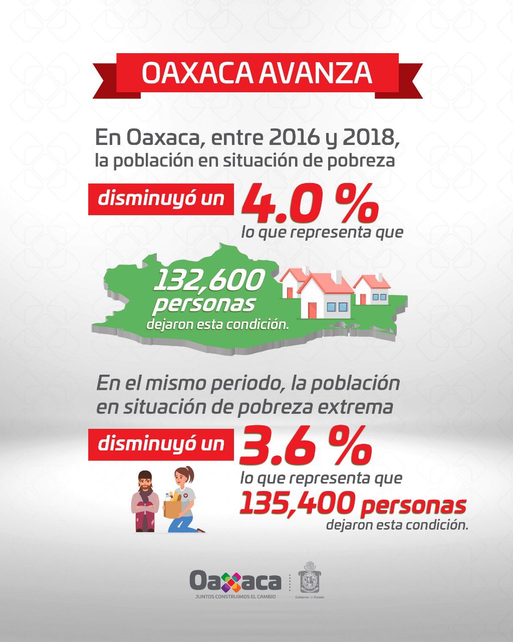 Entre 2010 y 2016 el porcentaje de la población oaxaqueña viviendo en pobreza creció un 8.6%, lo que provocó que hasta un 70.4% de la población oaxaqueña (más de 2 millones 700 mil personas) cayera en esta clasificación. Pero a partir de entonces las cosas han comenzado a cambiar y de manera ejemplar.