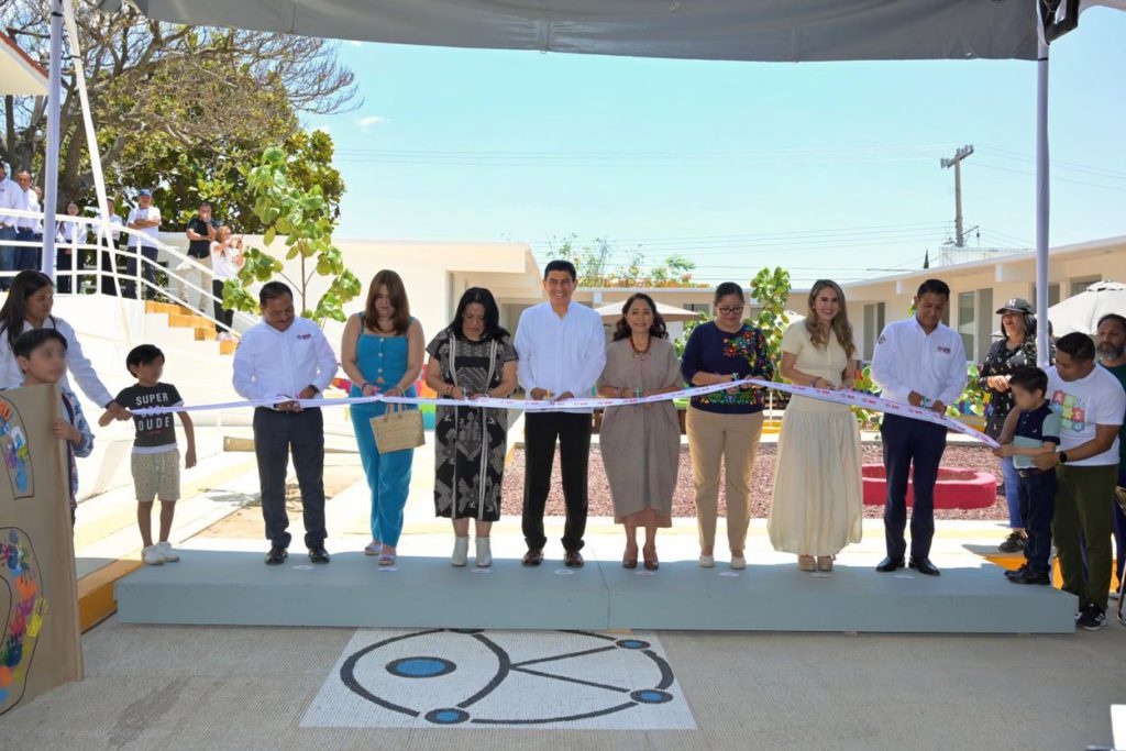 El gobernador Salomón Jara Cruz y la presidenta Honoraria del Sistema para el Desarrollo Integral de la Familia (DIF) Oaxaca, Irma Bolaños Quijano, al cortar el listón inaugural detallaron que este espacio ahora cuenta con una cámara sensorial y nueve aulas nuevas para brindar terapias.