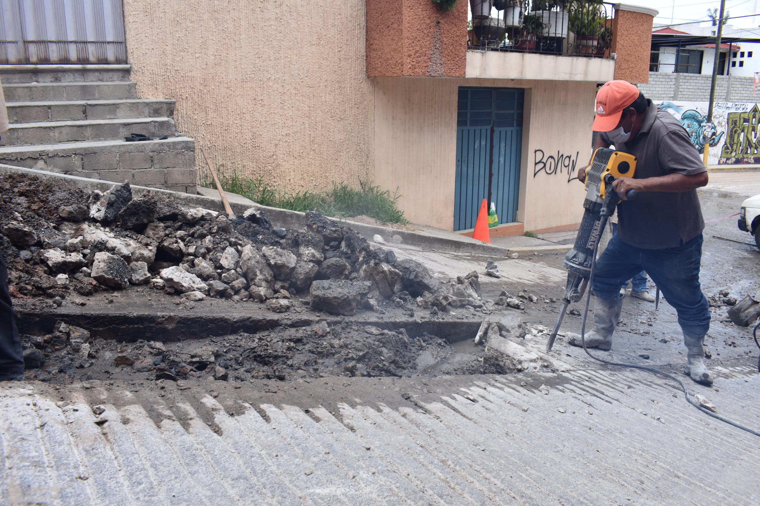 La titular de Sapao explicó que las tareas de reposición que se realizan en la zona, consisten en ejecutar el corte y demolición de concreto, excavación y monitoreo de fuga, para posteriormente iniciar con la sustitución de la línea sanitaria afectada.