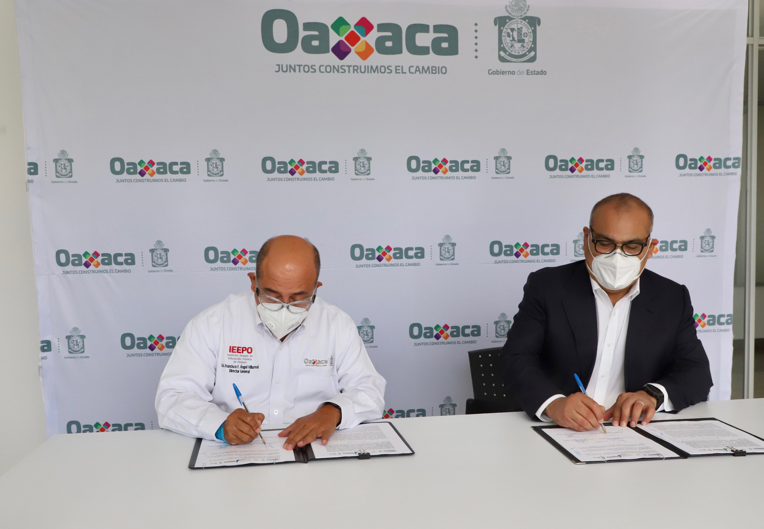 Con el objetivo de establecer las bases bajo las cuales colaborarán de manera conjunta, para llevar a cabo la reproducción televisiva del programa “Aprende en Casa II”, en los niveles de Educación Preescolar Primaria y Secundaria, los directores del Instituto Estatal de Educación Pública de Oaxaca (IEEPO), Francisco Ángel Villarreal y de la Corporación Oaxaqueña de Radio y Televisión (CORTV), Martín Vásquez Villanueva, firmaron un convenio de colaboración.