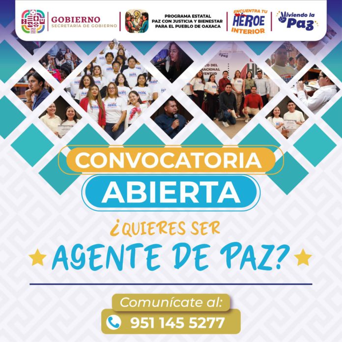 La Secretaría de Gobierno del Estado de Oaxaca (Sego), lanza la segunda convocatoria del programa “Agentes de Paz”, dirigida a las juventudes oaxaqueñas comprometidas con la transformación social y la construcción de entornos más armónicos.