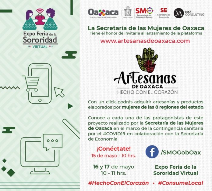 A fin de impulsar la comercialización de los productos de mujeres artesanas oaxaqueñas emprendedoras, afectadas por la contingencia derivada de COVID-19, se llevará a cabo la Expo Feria de la Sororidad Virtual los días 15, 16 y 17 de mayo.