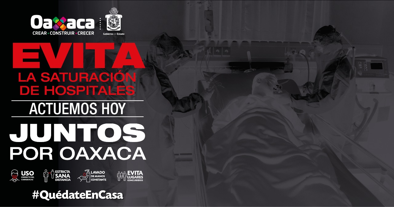 Una vez más, y ante el incremento de los contagios por COVID-19 en la entidad, el Gobierno de Oaxaca ha implementado una campaña de comunicación en la que ciudadanas y ciudadanos invitan a la sociedad oaxaqueña a sumarse a actuar hoy “Juntos por Oaxaca”, con el fin de evitar la saturación en los hospitales de la entidad mediante el reforzamiento de las medidas de prevención.