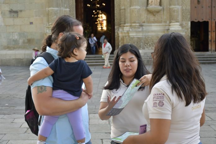 En la Alameda de León, Castro Campos destacó que el Ayuntamiento cuenta con 33 anfitriones turísticos, nueve de ellos en silla de ruedas, que recorrerán las calles del Centro Histórico para proporcionar a las y los visitantes información turística, de sitios de interés, de actividades culturales, zonas arqueológicas, museos, bibliotecas, entre otros, no solo de Oaxaca de Juárez sino de todo el estado.