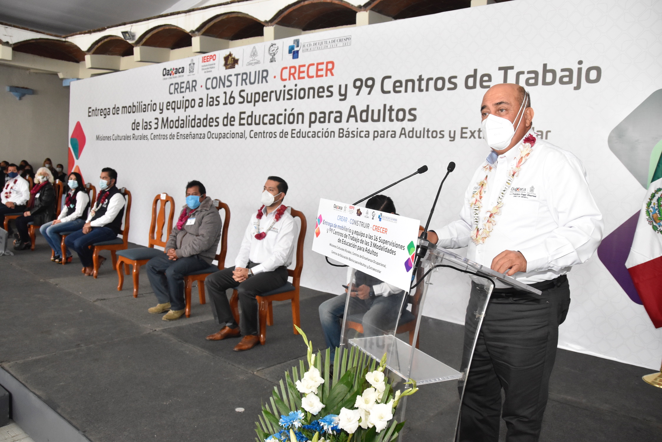 - Para mejorar las condiciones y la labor en 16 Supervisiones y 99 Centros de Trabajo que atienden a cerca de 12 mil personas adultas de comunidades rurales y semiurbanas con educación y capacitación, con la representación del gobernador Alejandro Murat Hinojosa, el director general del Instituto Estatal de Educación Pública de Oaxaca (IEEPO), Francisco Ángel Villarreal, hizo entrega de mobiliario y equipo por un monto de cinco millones de pesos.
