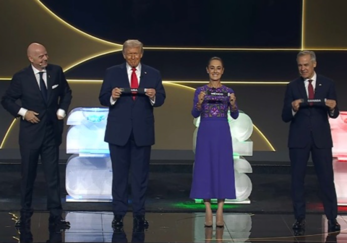 El primer ministro de Canadá, Mark Carney, sacó la primera bola del sorteo, que fue Canadá. Claudia Sheinbaum sacó la pelota con el nombre de México, y Trump la de Estados Unidos, equipos anfitriones y que estaban sembrados de antemano.