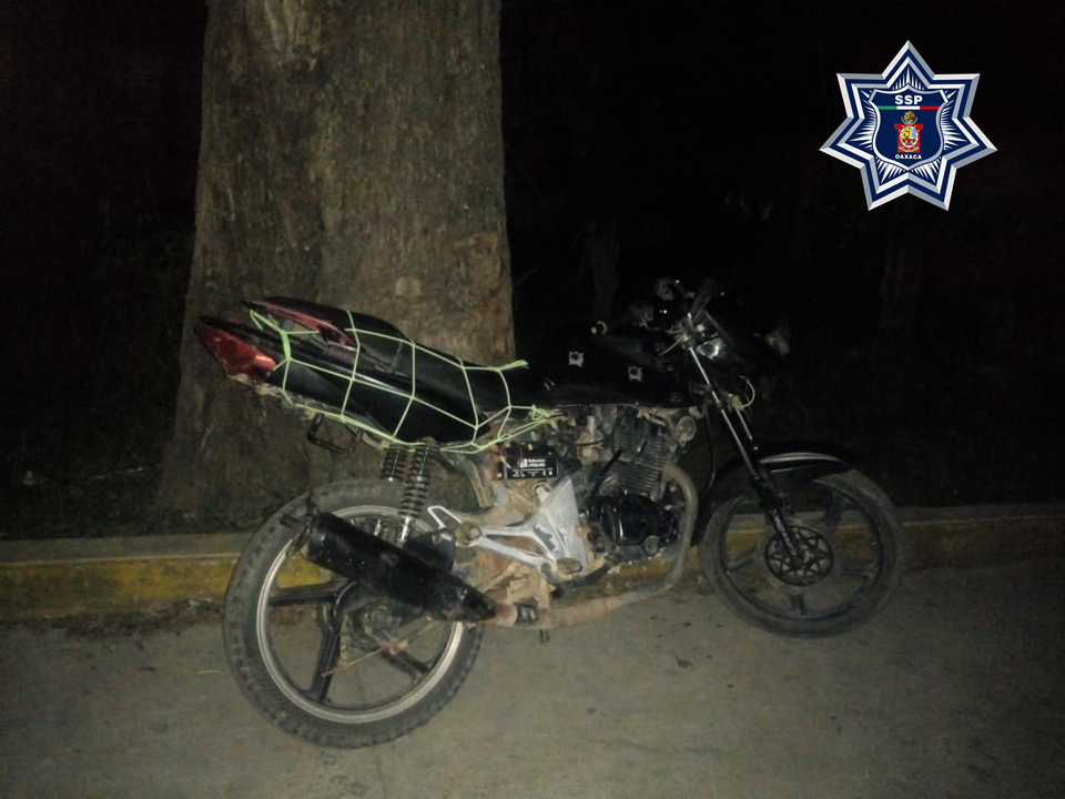 La Secretaría de Seguridad Pública de Oaxaca (SSPO), informa que como parte de los recorridos de seguridad y vigilancia realizados en las ocho regiones del Estado, personal de la Policía Estatal aseguró en distintas intervenciones, tres motocicletas con reportes de robo vigente.
