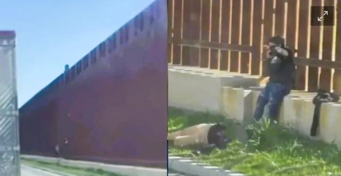 En las imágenes se aprecian las caídas consecutivas: la primera mujer cae de costado, y segundo después la segunda migrante cae con sus piernas; de acuerdo a los datos, en esta parte de la frontera la altura máxima en algunas partes del muro es de nueve metros.