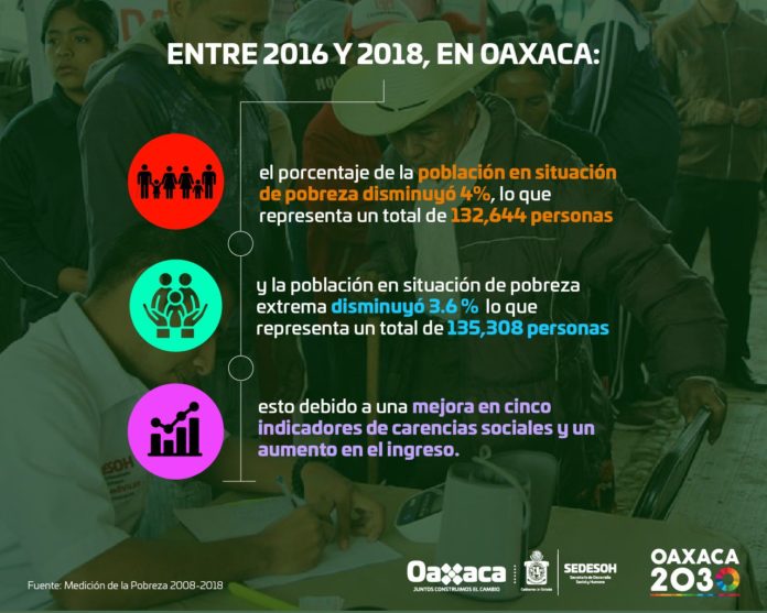 Los resultados de la primera medición de la pobreza multidimensional, señalan que la pobreza extrema en el estado disminuyó en 23.3%, informó la Secretaría de Desarrollo Social y Humano de Oaxaca (Sedesoh).