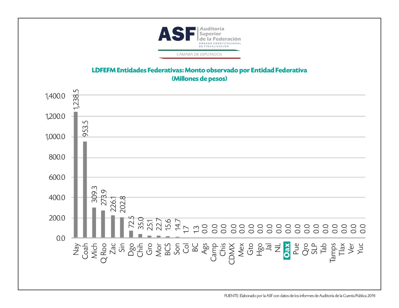 El Gobierno del Estado de Oaxaca, que encabeza Alejandro Murat Hinojosa, destaca a nivel nacional por el manejo eficiente del gasto público y su disciplina financiera, de acuerdo con los Informes Individuales y el Informe General Ejecutivo del Resultado de la Fiscalización Superior de la Cuenta Pública 2019 de la Auditoría Superior de la Federación (ASF).