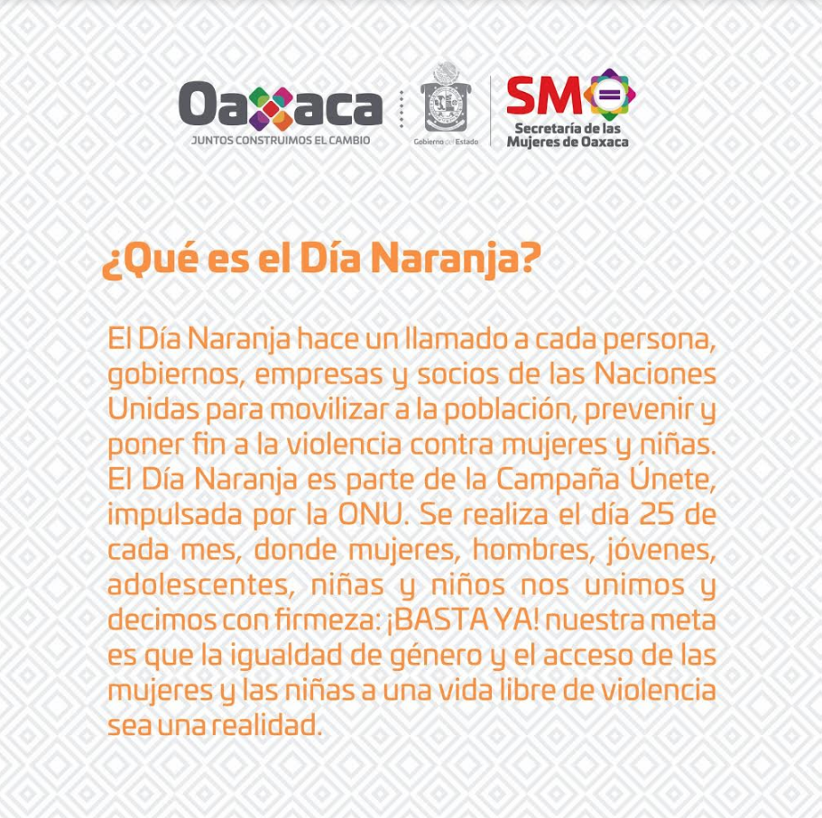 Toda acción encaminada a llamar la atención de la sociedad para reflexionar y hacer conciencia en que la violencia contra las mujeres nos afecta a todas y todos y también, les corresponde actuar, para poder erradicarla. Este sábado 25 de enero, Únete al Día Naranja.