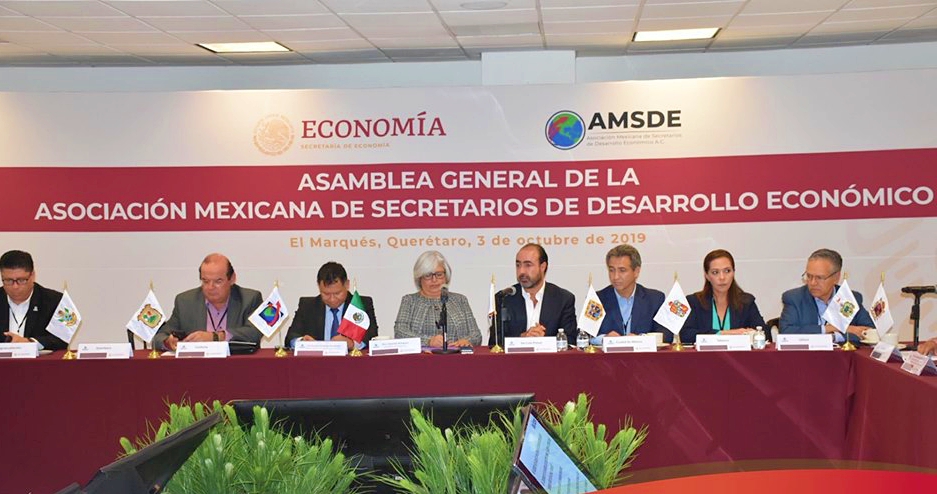 El secretario de Economía, Juan Pablo Guzmán Cobián, participó en la Asamblea General de la Asociación Mexicana de Secretarios de Desarrollo Económico (AMSDE), presidida por la secretaria de Economía Federal, Graciela Márquez Colín.